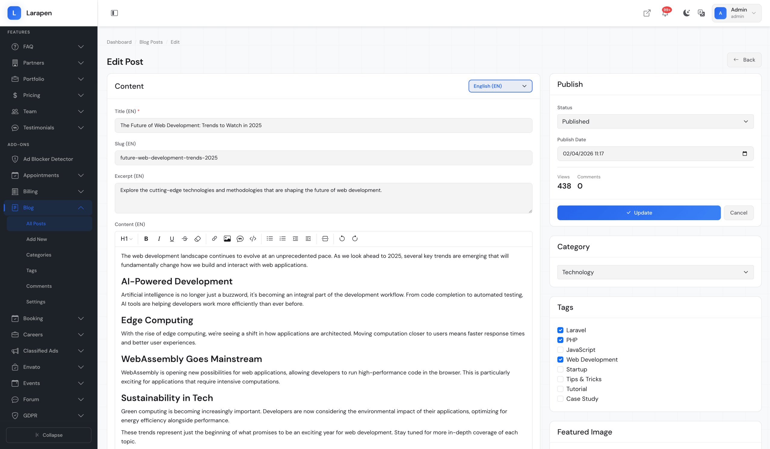 Add professional blogging capabilities to your Larapen website and start building your audience.