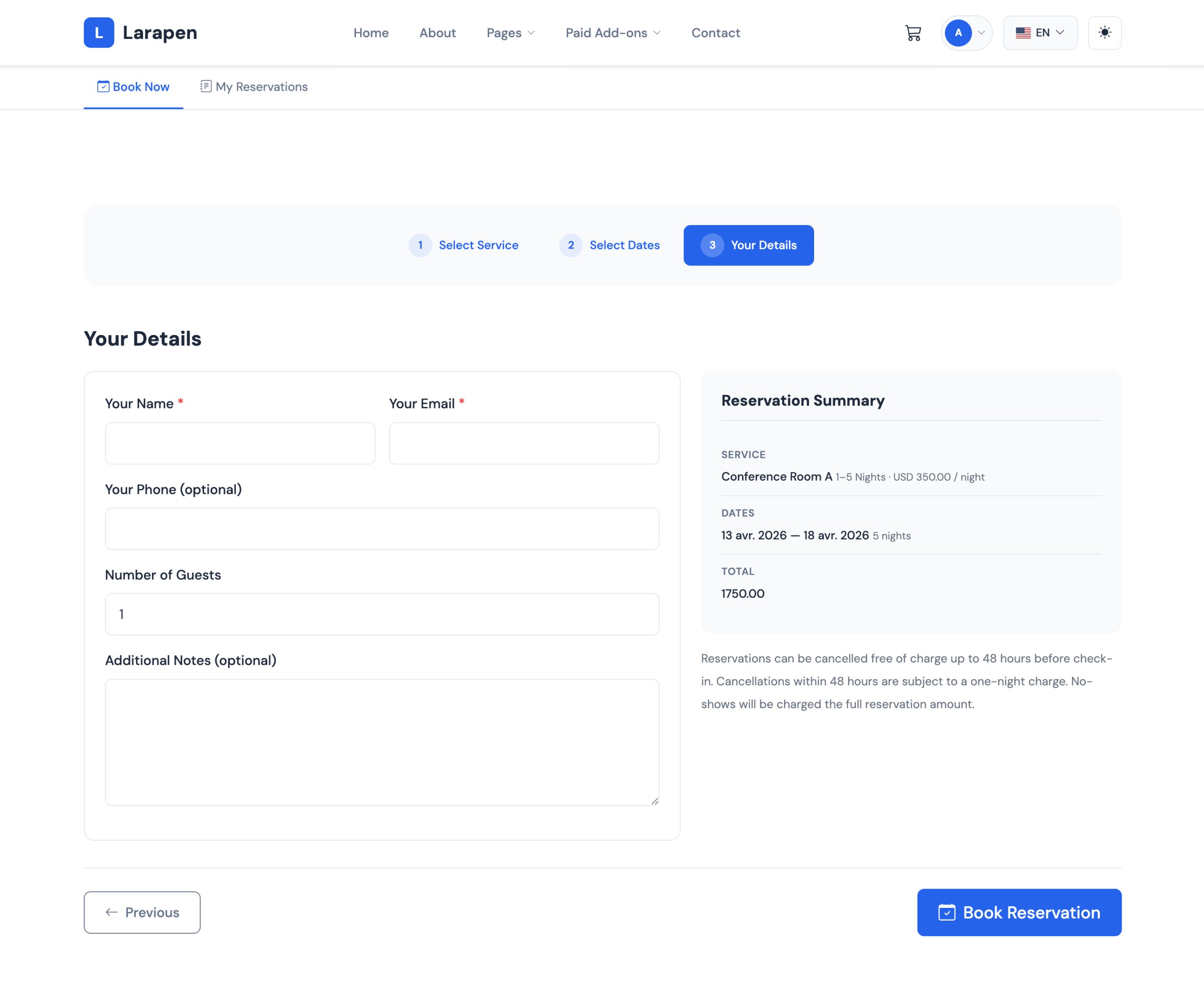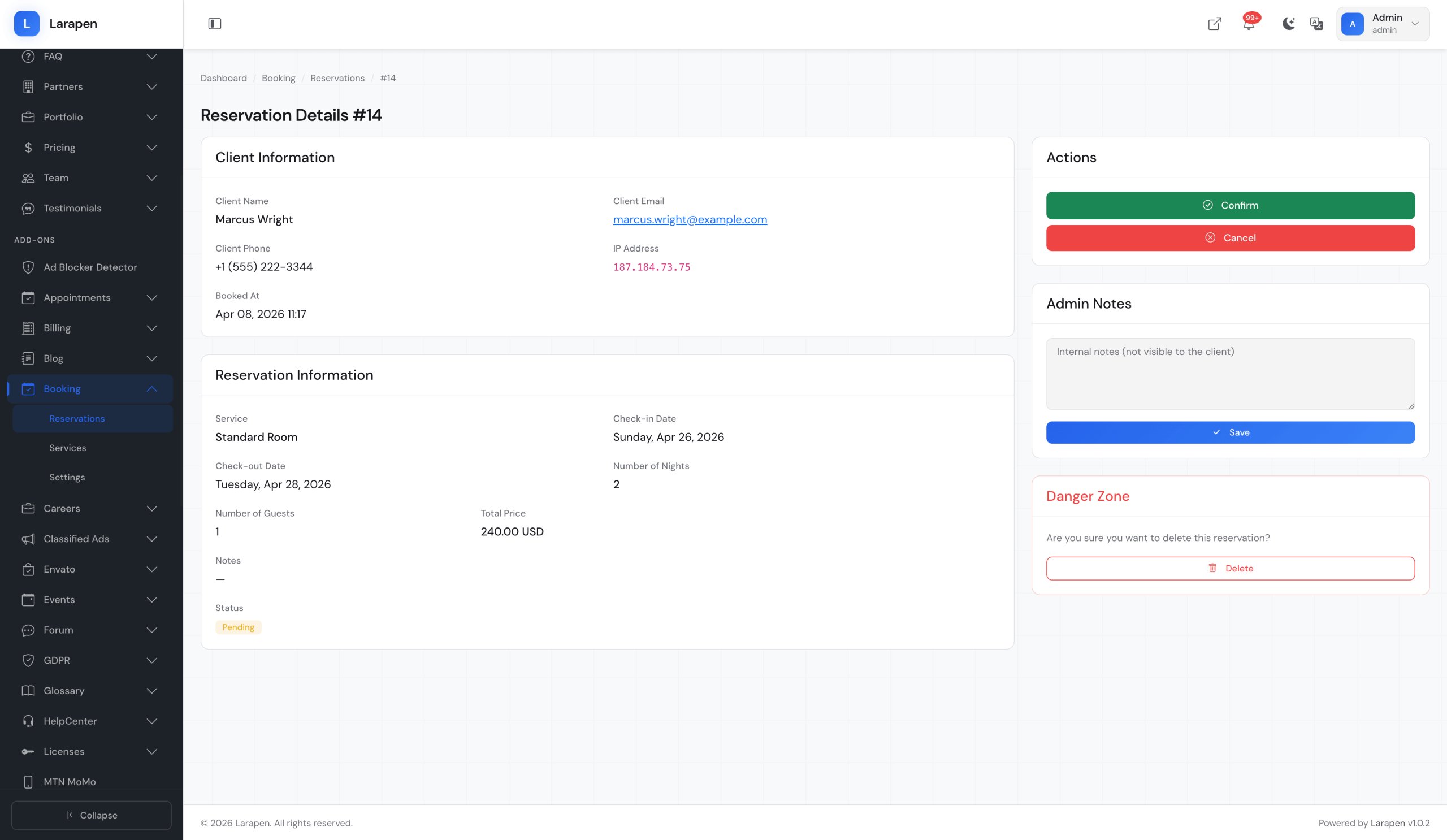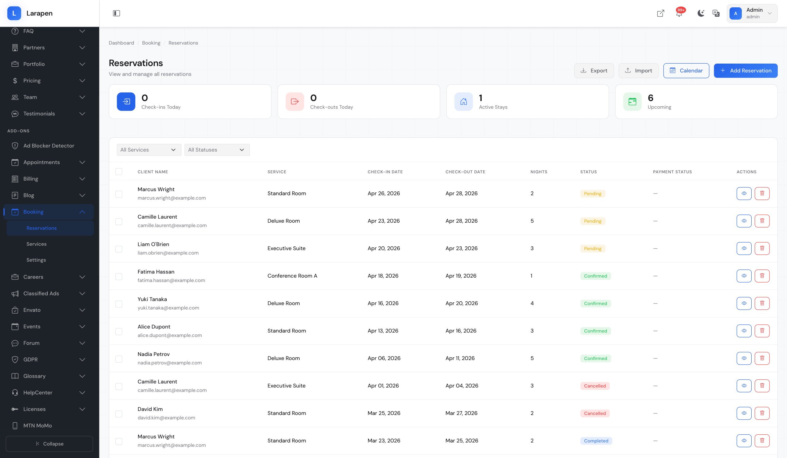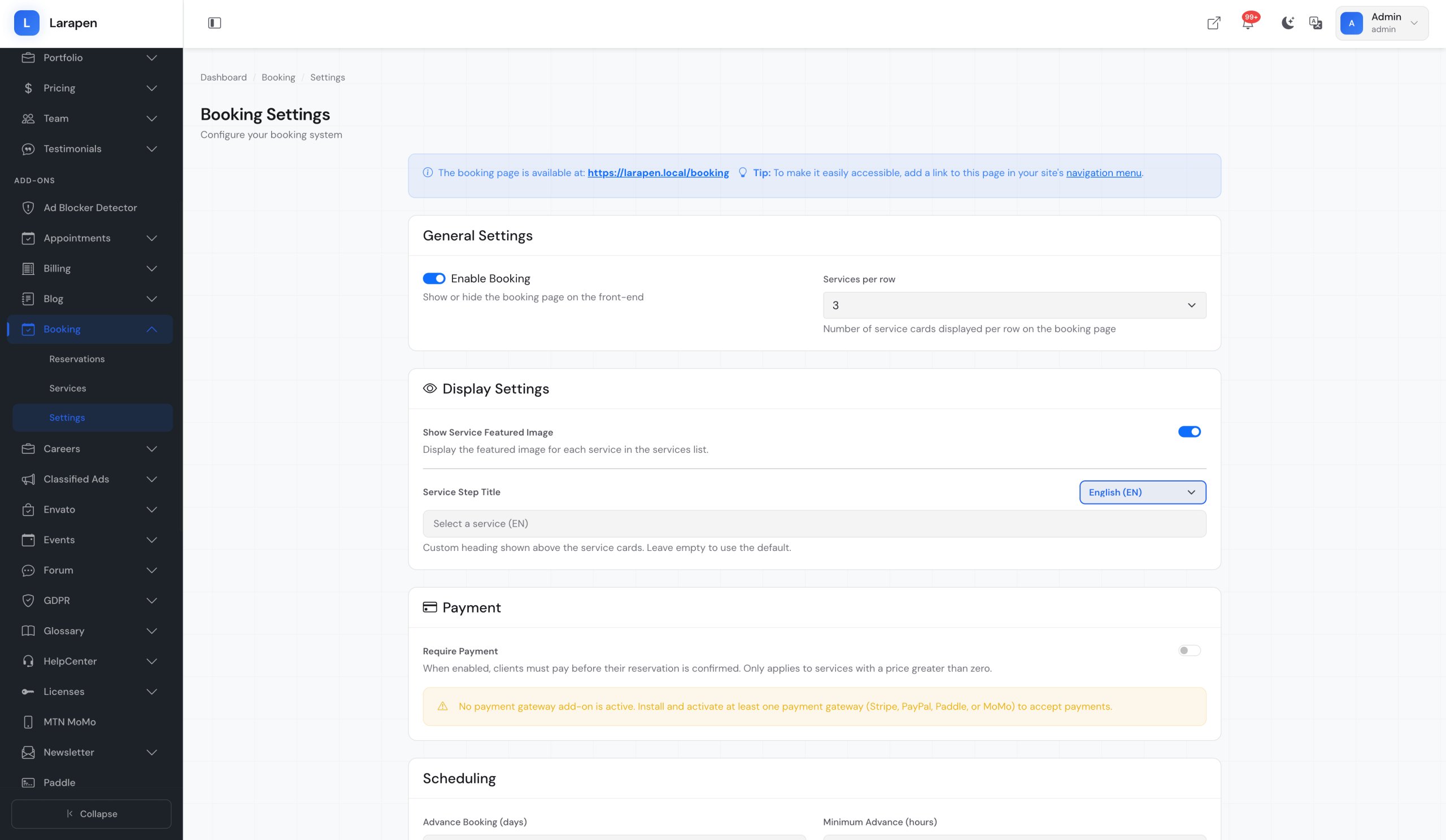Let clients book appointments and schedule services directly from your website. Manage time slots, availability, confirmations, and reminders; all from your Larapen admin panel.