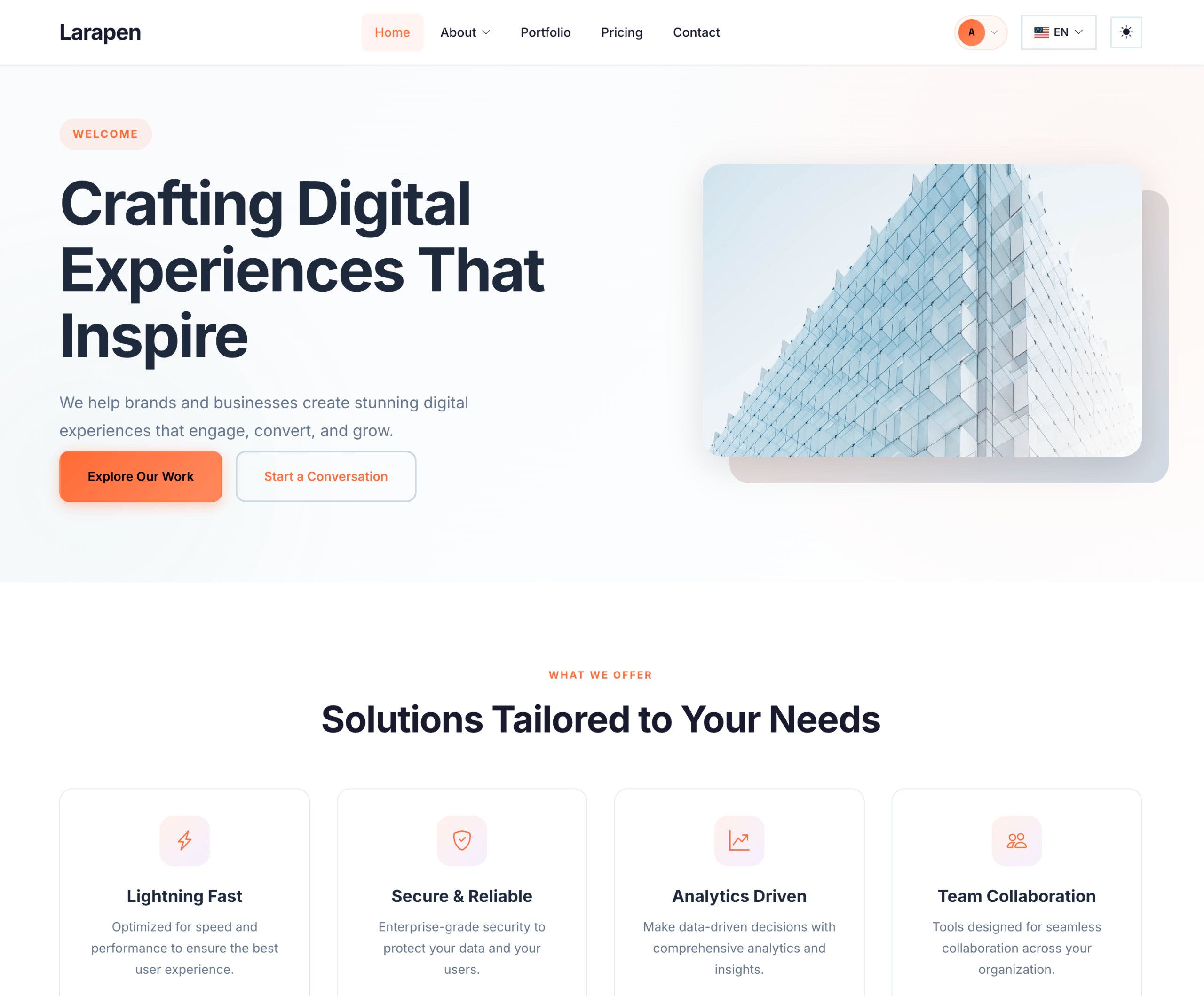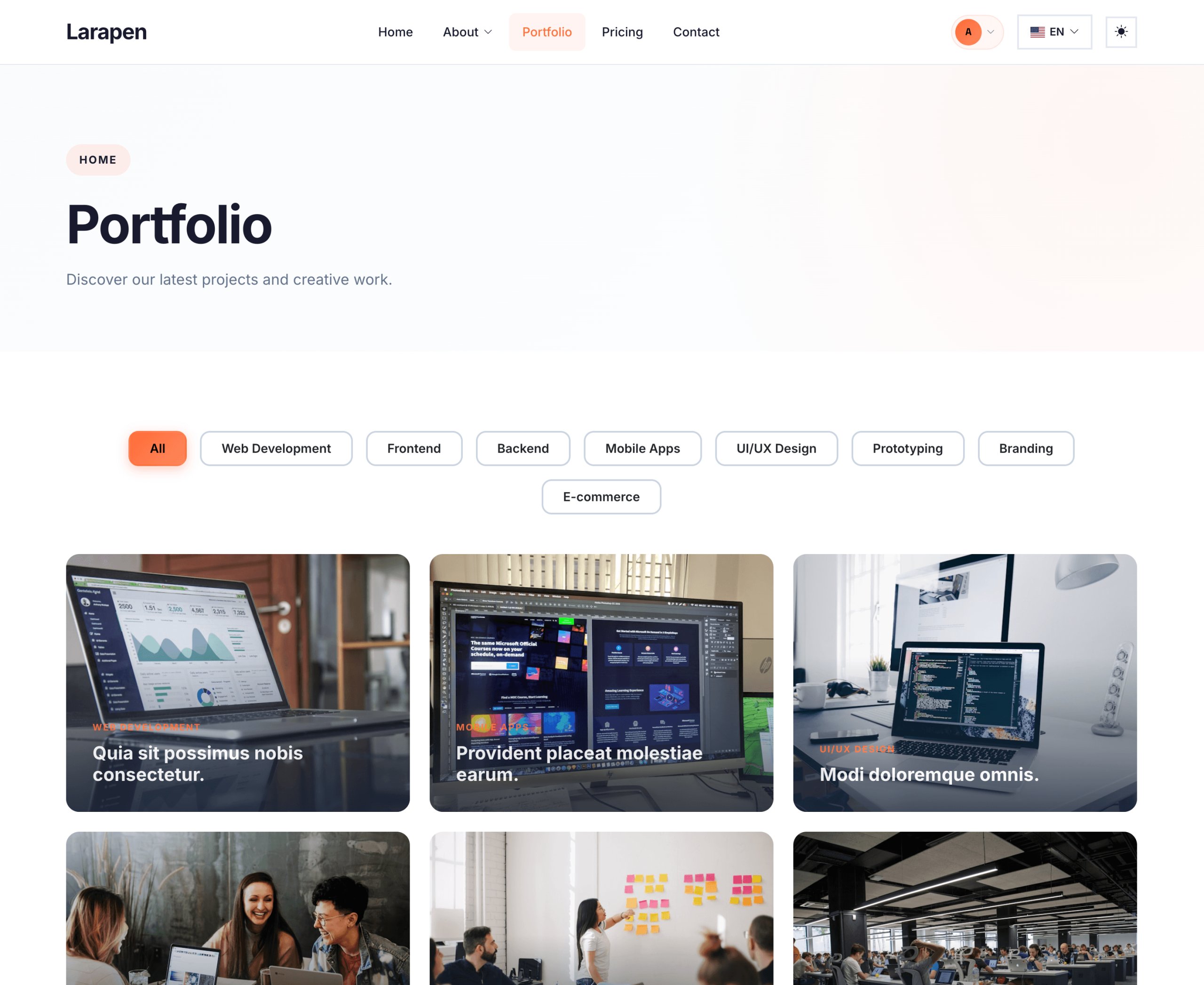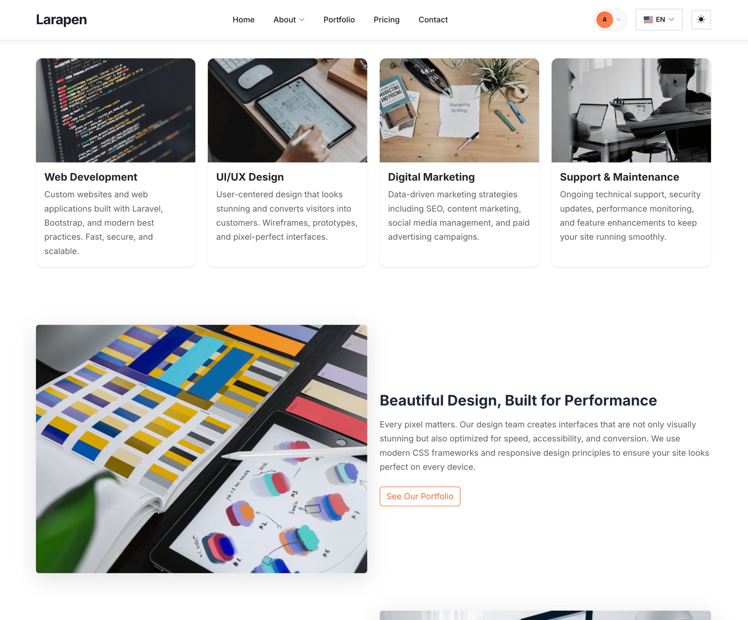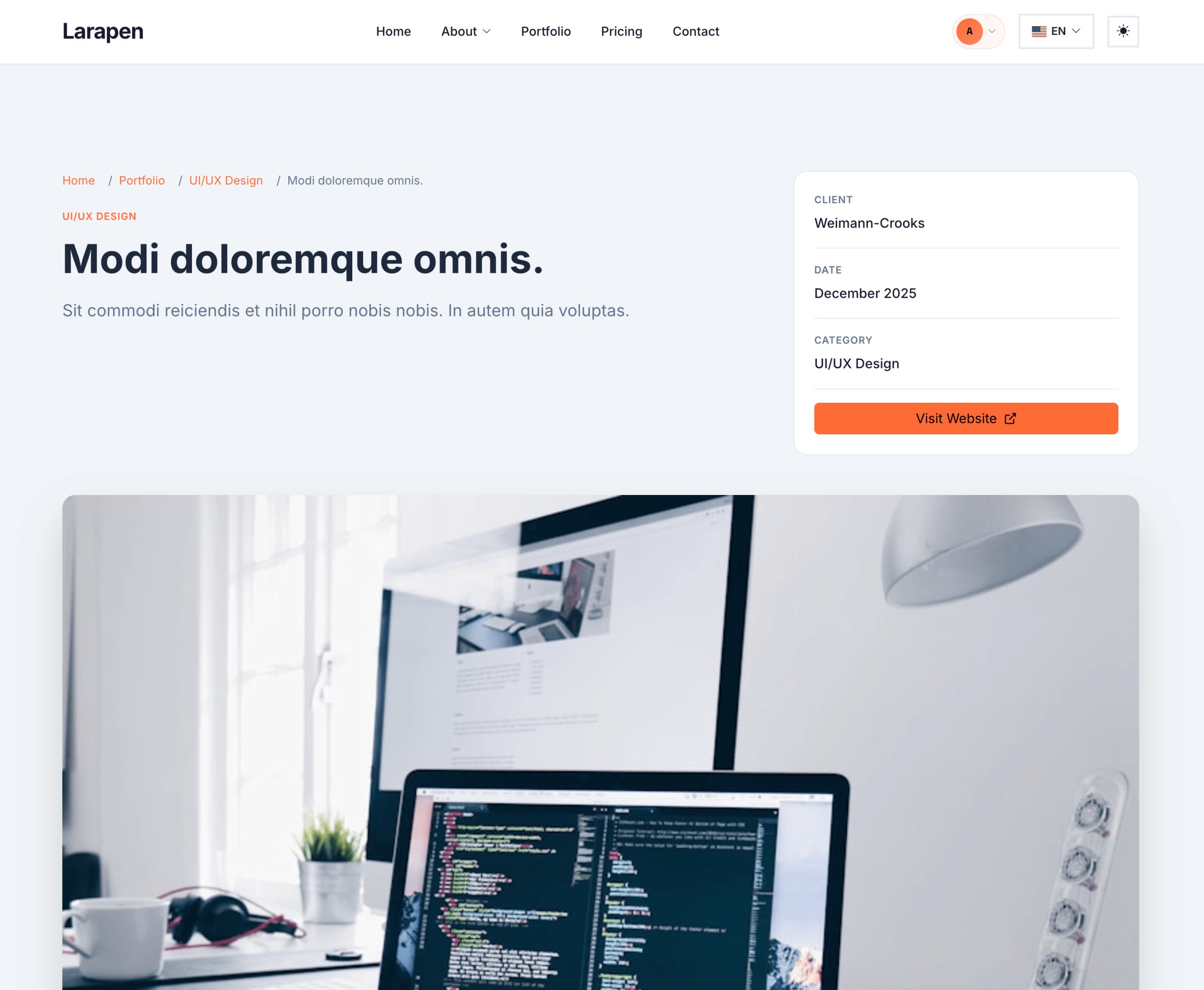 A complete theme package designed for creative professionals. Sold separately from the core Larapen app.