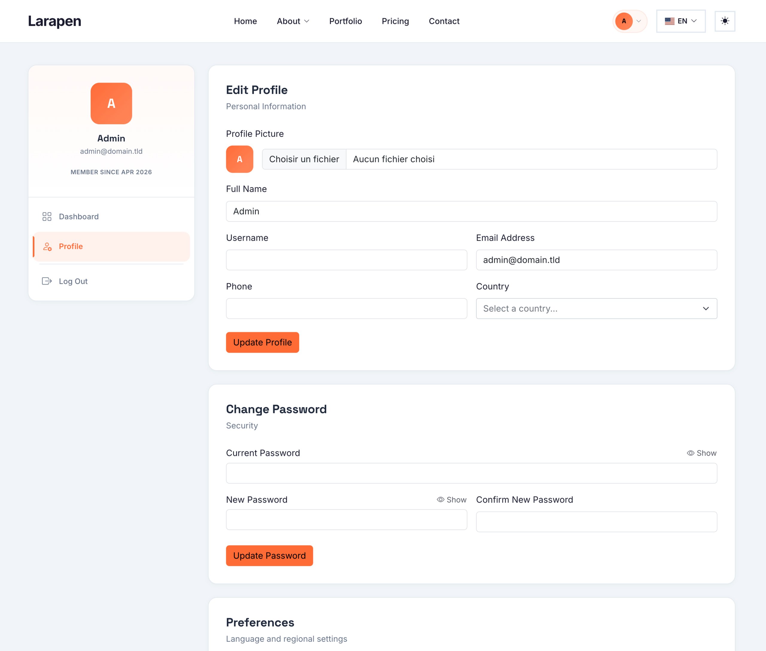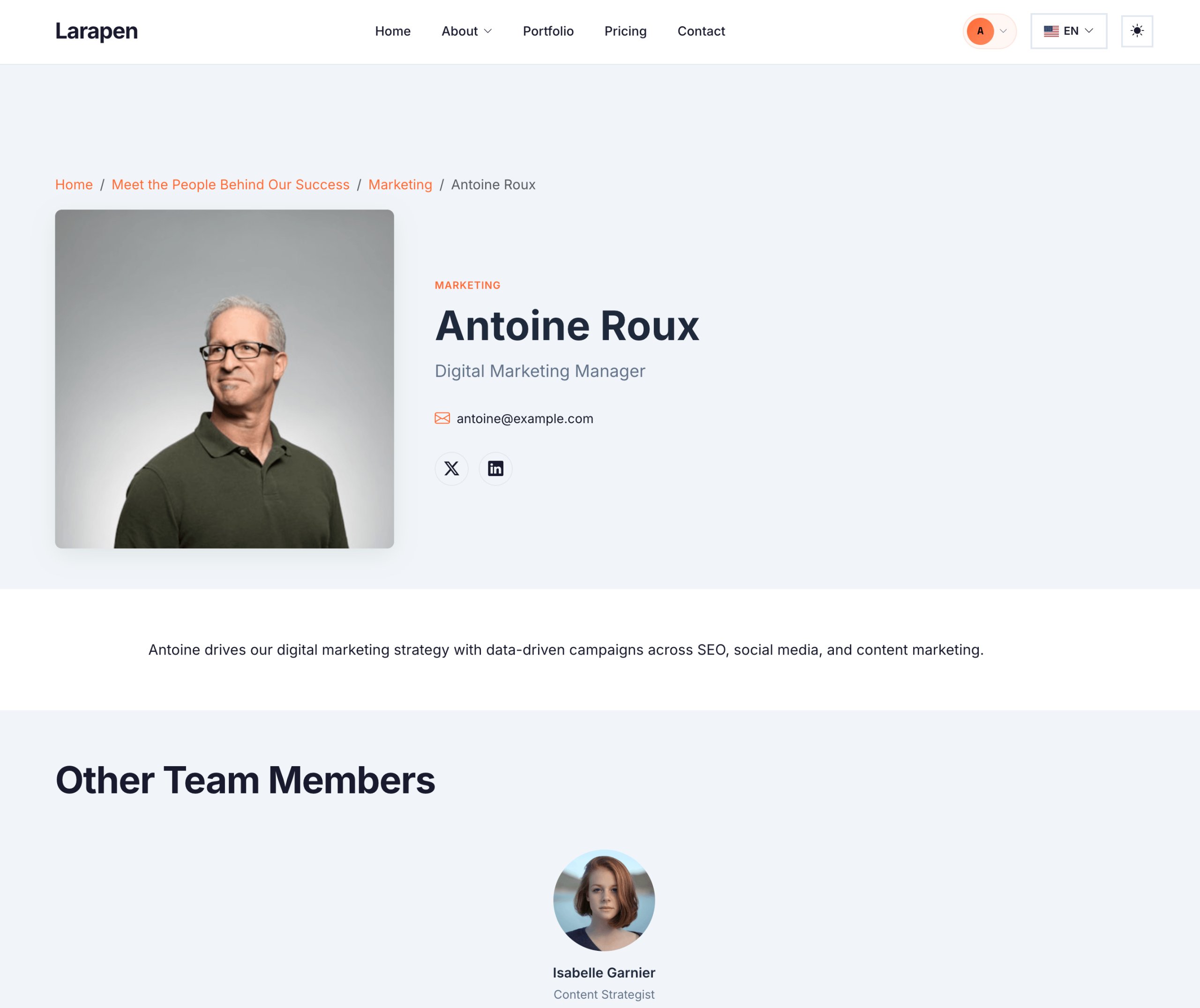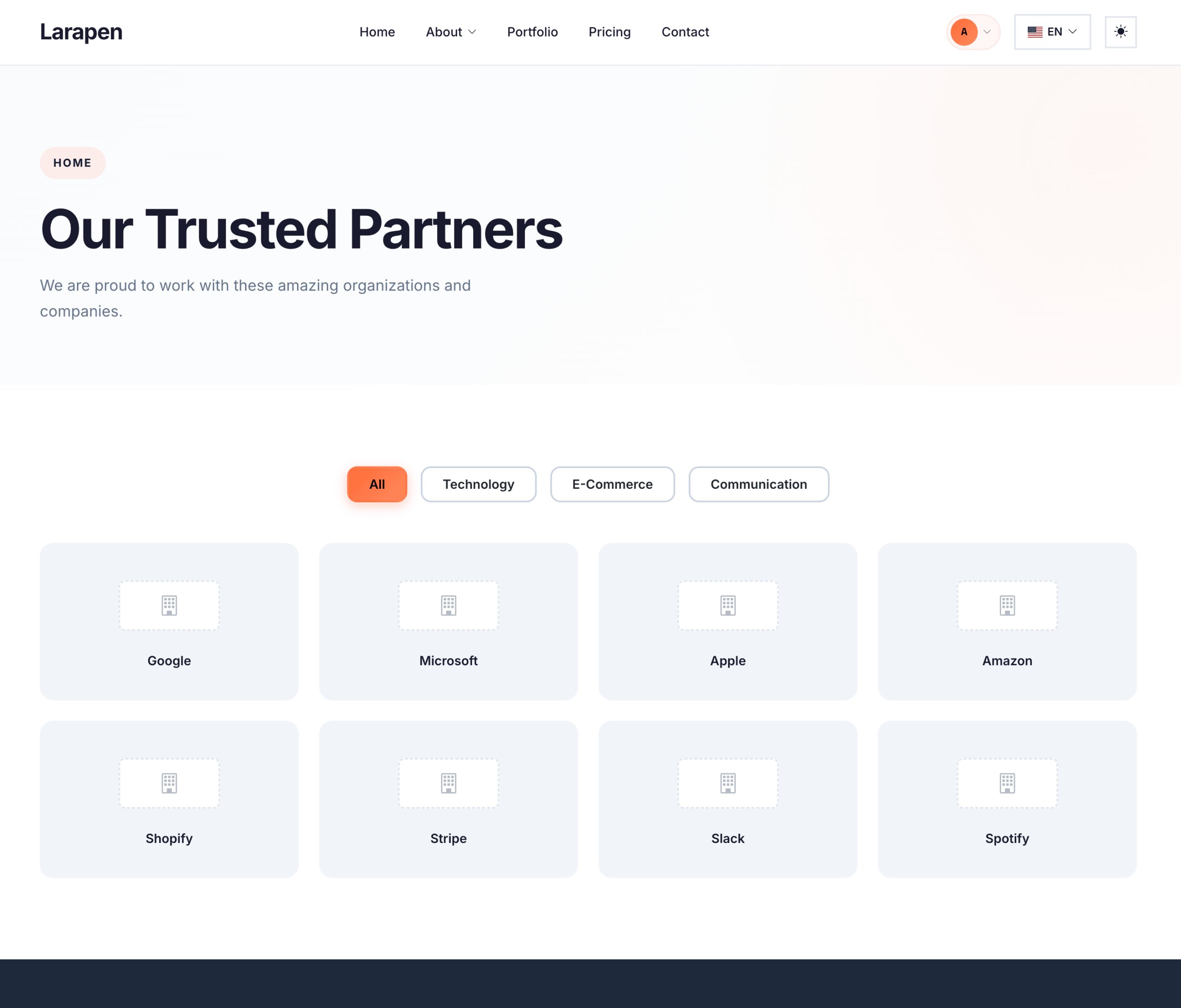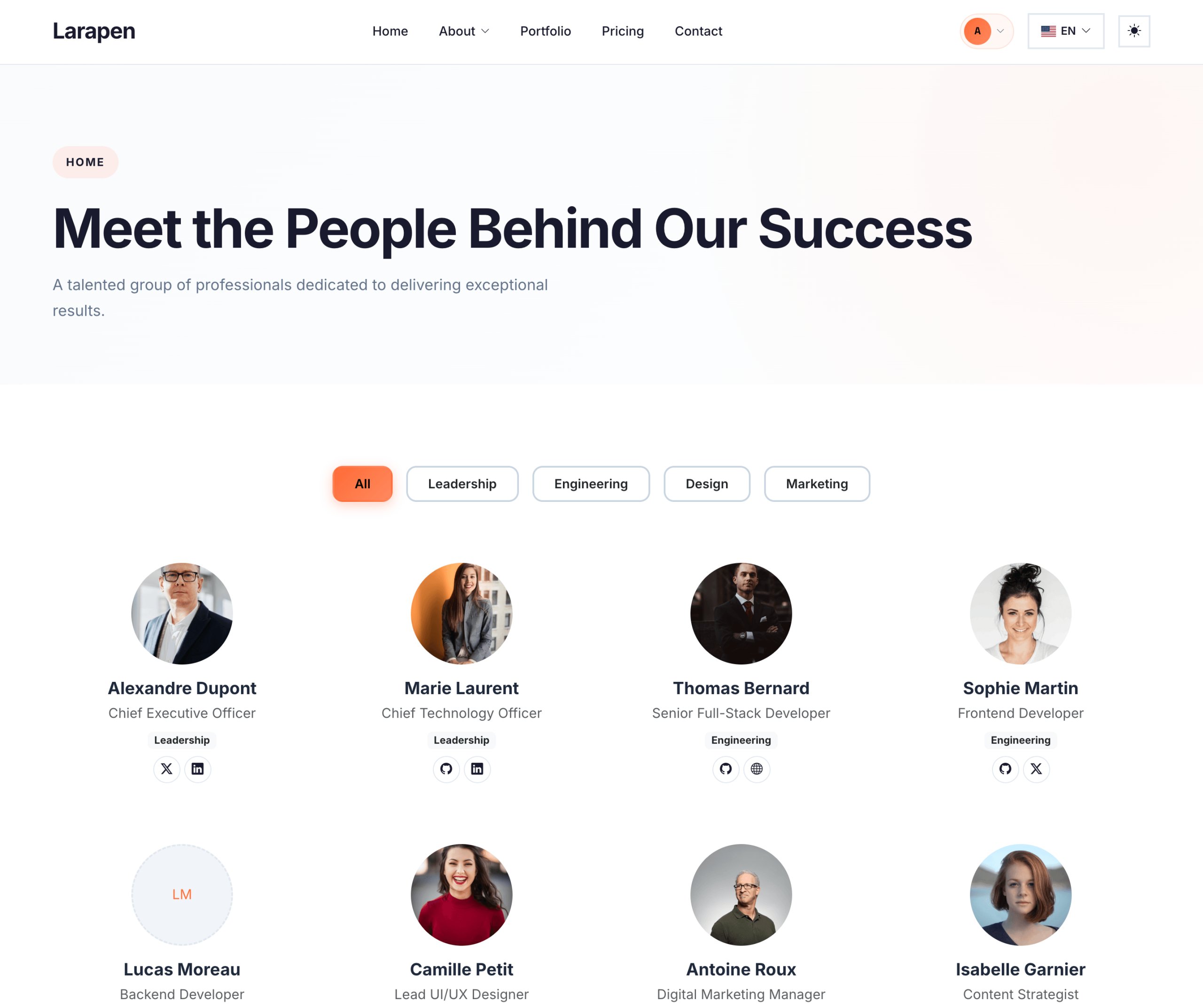 A complete theme package designed for creative professionals. Sold separately from the core Larapen app.