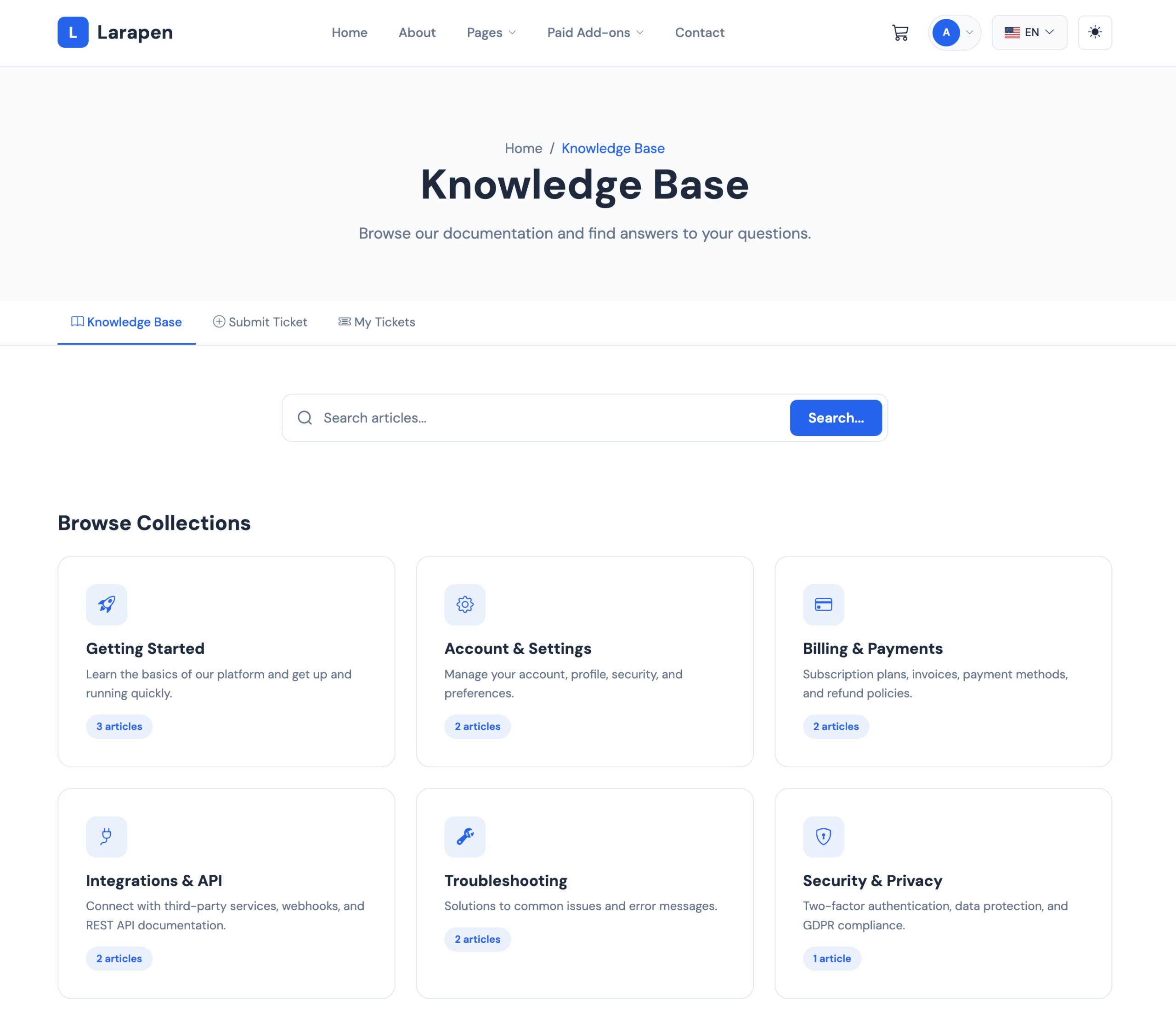 Reduce support tickets and empower your users with a comprehensive self-service knowledge base. Organize help articles into collections, manage support departments, and let visitors find answers on their own.