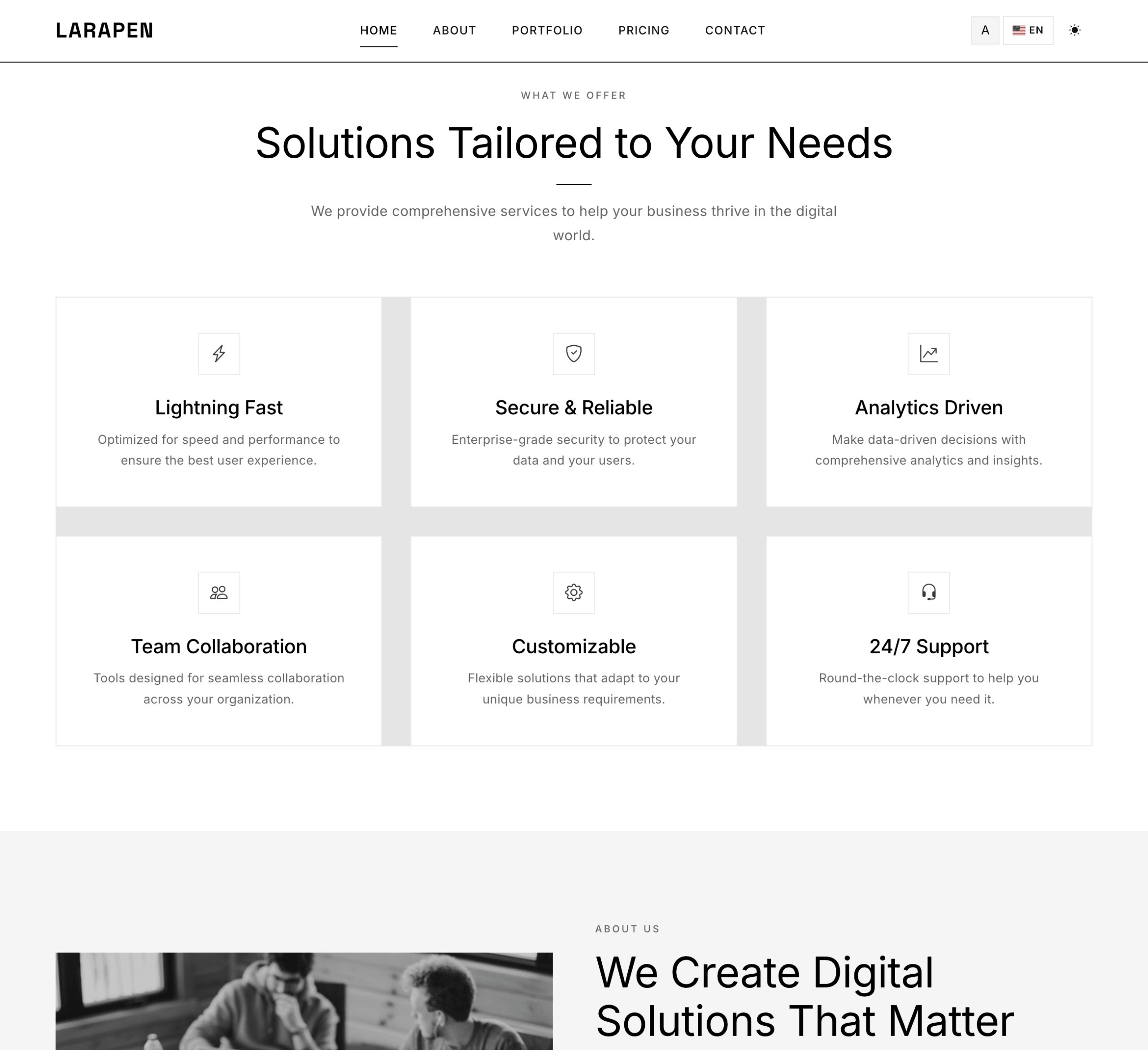 The Minimalist theme has the smallest custom CSS of any Larapen theme. It leverages Bootstrap utilities extensively, resulting in faster load times and easier maintenance.
