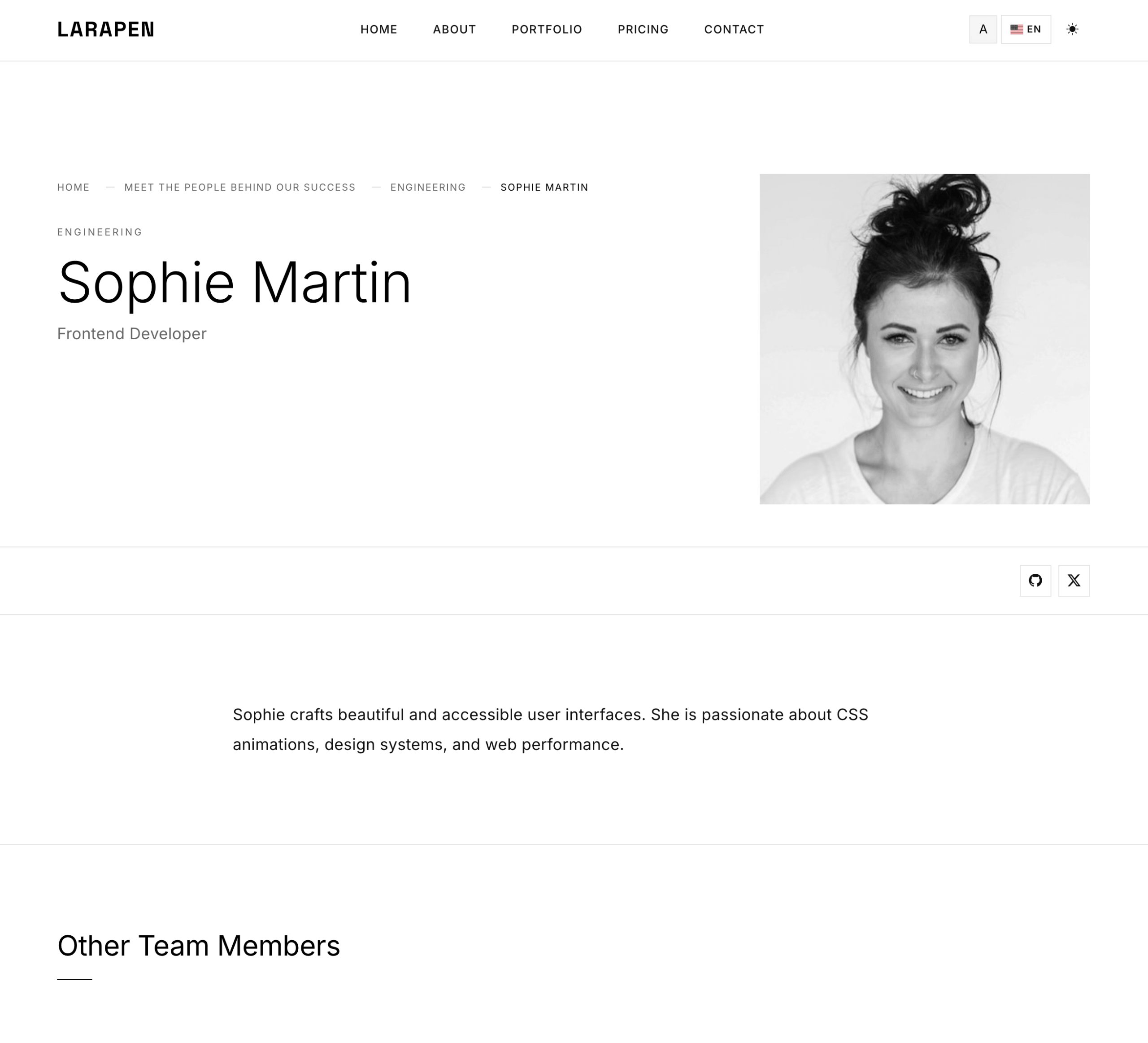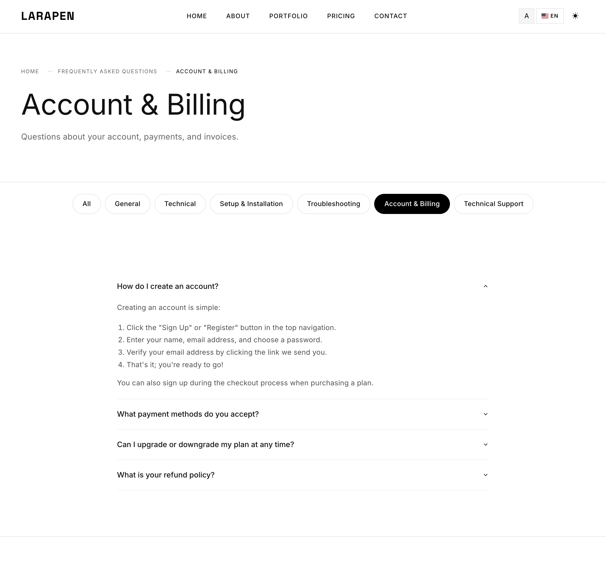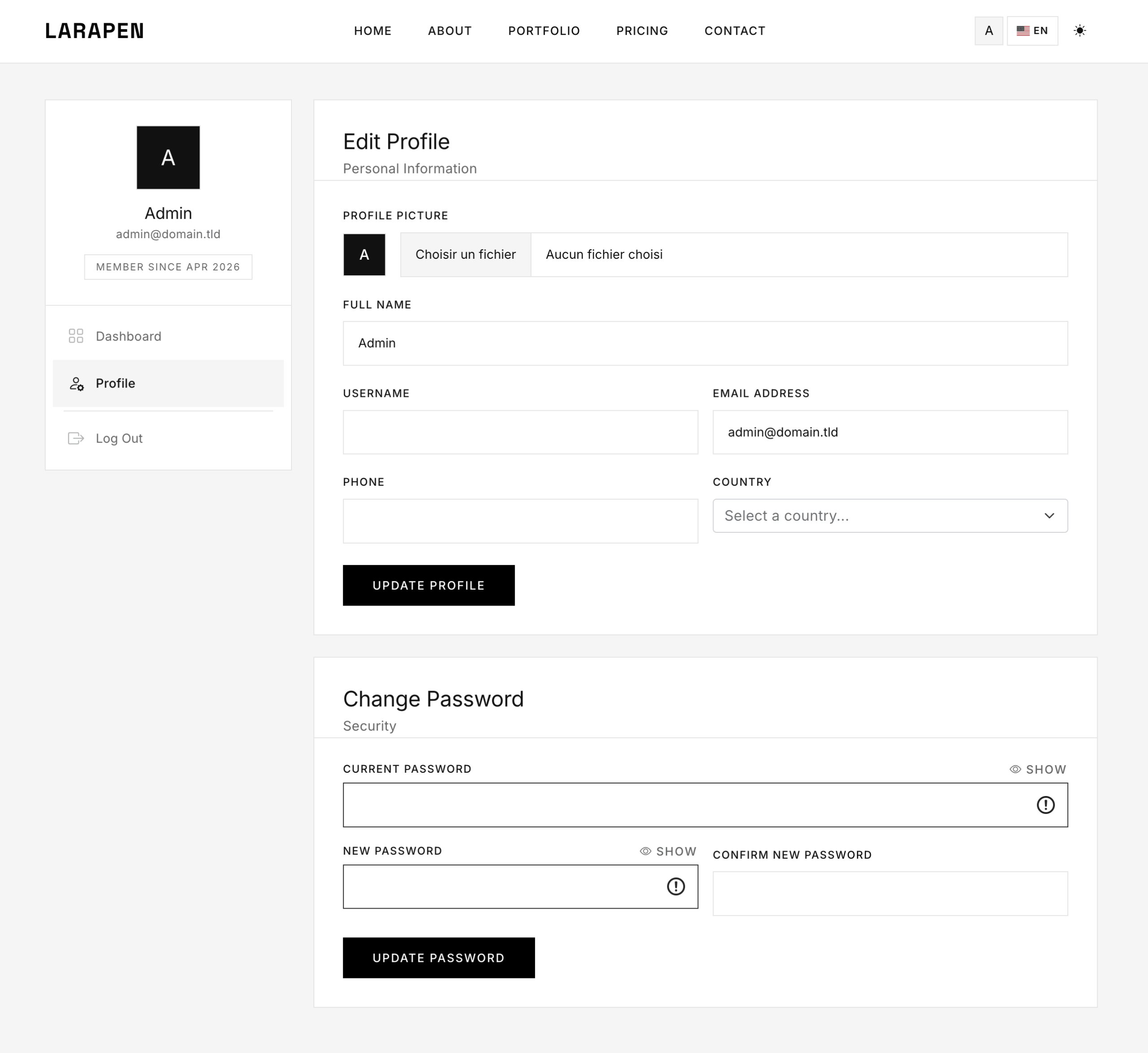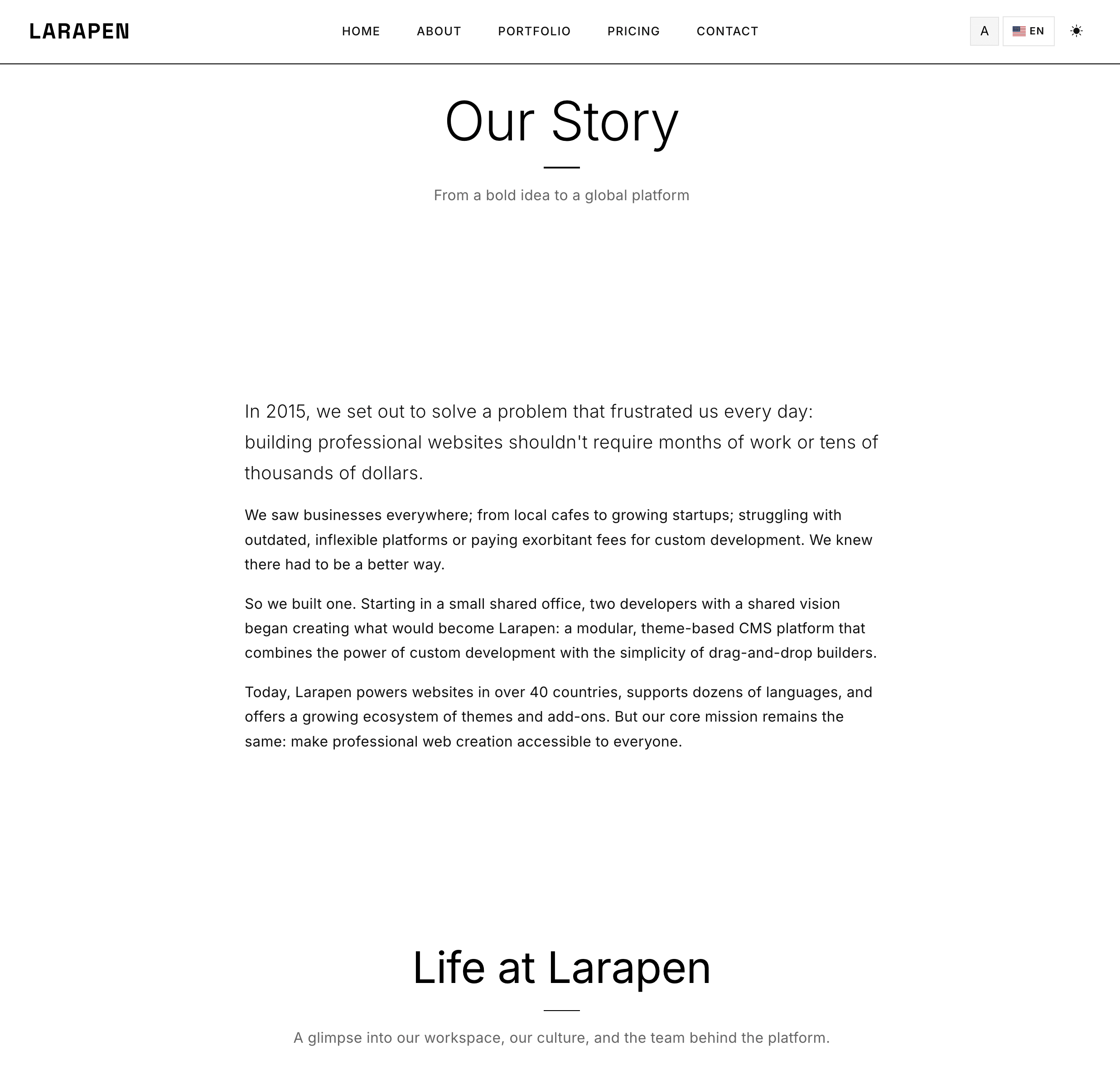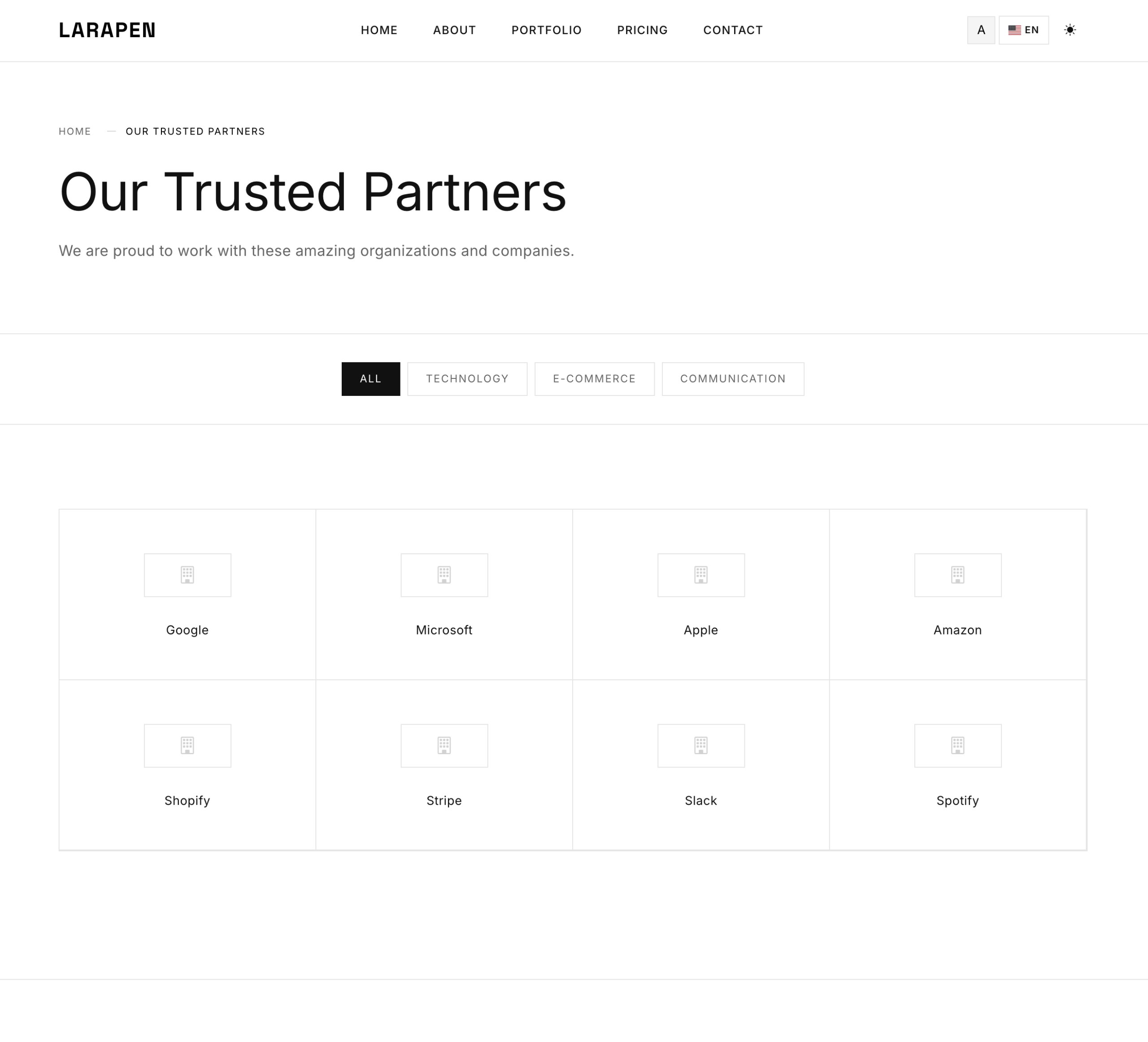 Every Larapen add-on: Blog, Shop, FAQ, Pricing, Team, Portfolio; has styled views that follow the Minimalist design philosophy. Clean, consistent, content-focused.