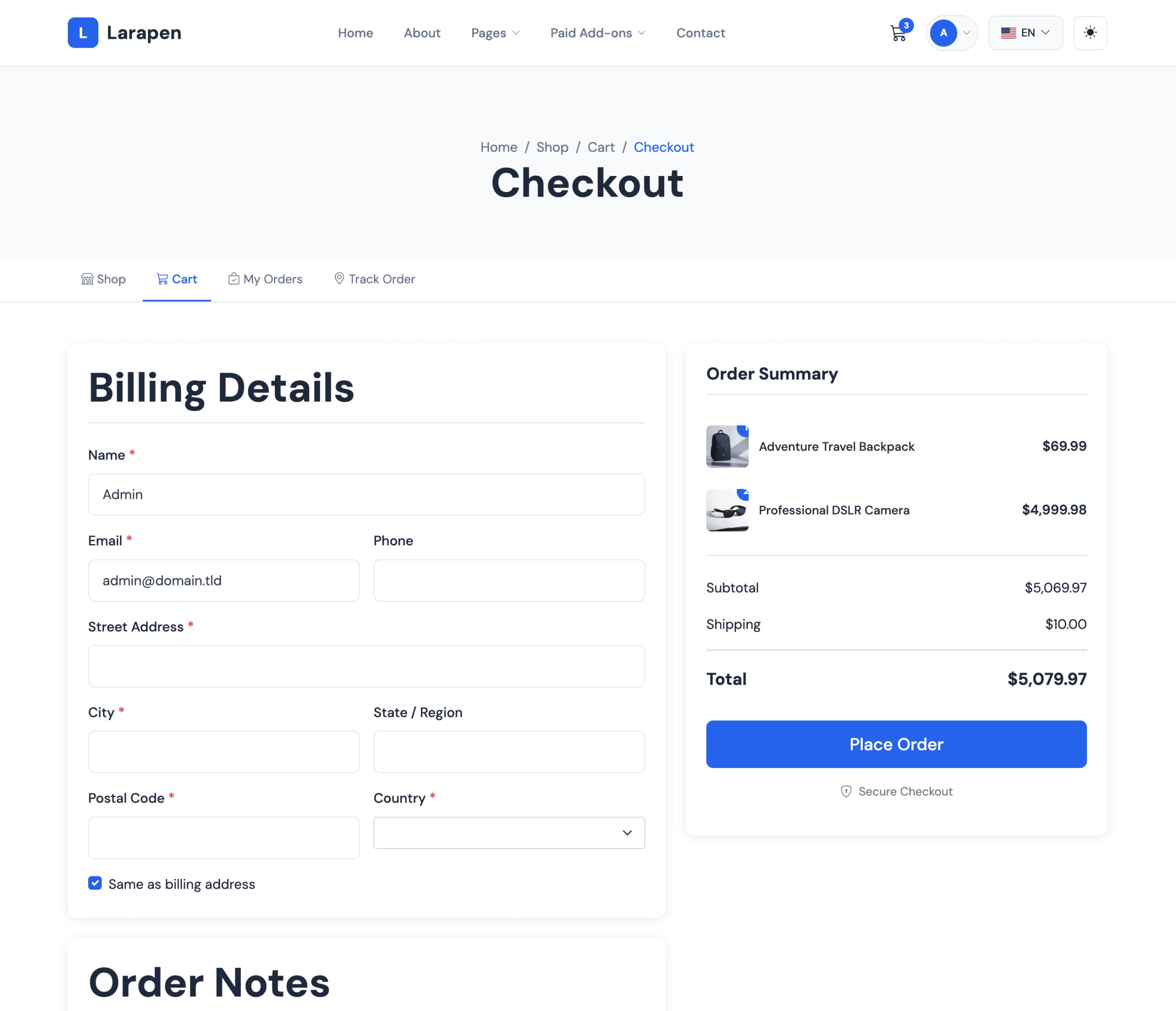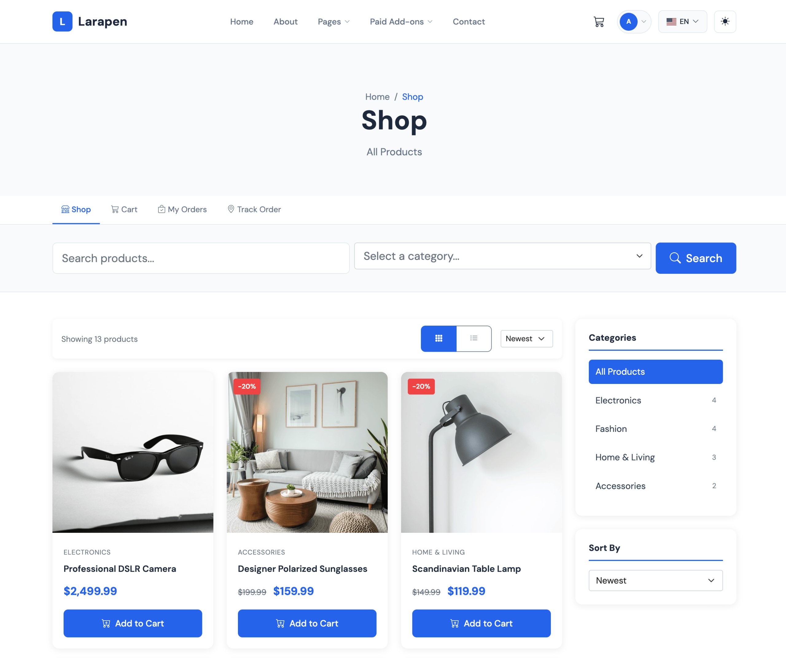 Turn your Larapen website into a full-featured online store. Sell physical and digital products, manage orders, process payments, and grow your revenue; no external platform needed.