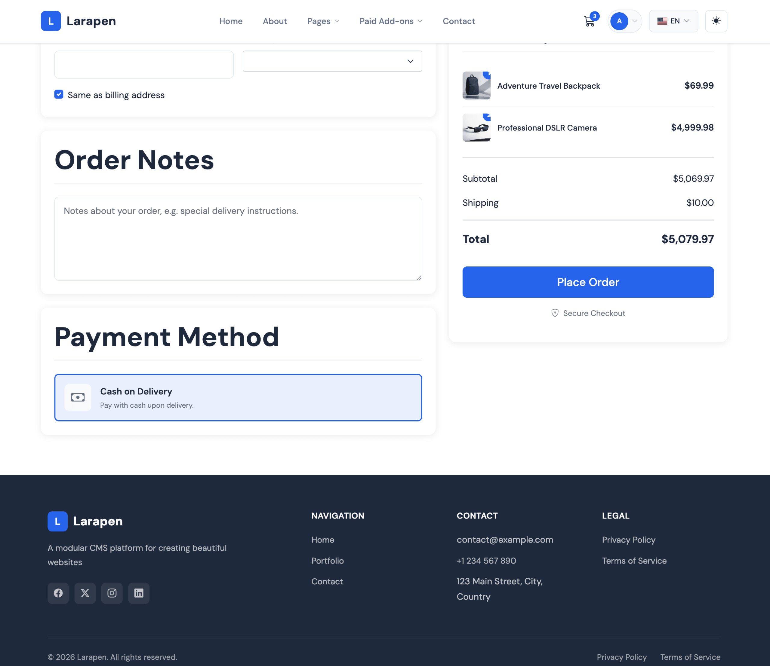 Start selling online with a complete, integrated e-commerce solution for your Larapen website.